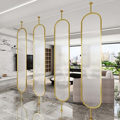मोरू ग्लास के साथ ओवल शेप गोल्ड कलर स्टेनलेस स्टील स्क्रीन पार्टीशन