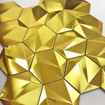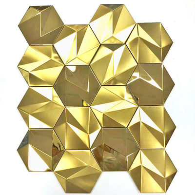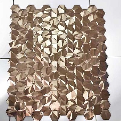 दीवार सजावट के लिए 3 डी षट्भुज गुलाब सोने का रंग स्टेनलेस स्टील मोज़ेक टाइल