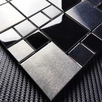 दीवार की सजावट के लिए स्क्वायर ब्लैक ग्रे रंग स्टेनलेस स्टील मोज़ेक टाइल