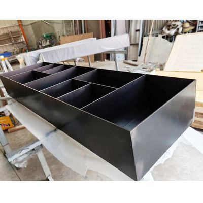 हेयरलाइन फिनिश ब्लैक कलर स्टेनलेस स्टील डिस्प्ले कैबिनेट पीवीडी कलरिंग