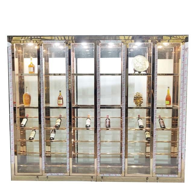 लक्ज़री मल्टीलेयर ग्लास डोर स्टेनलेस स्टील वाइन कैबिनेट वाइन रैक 6