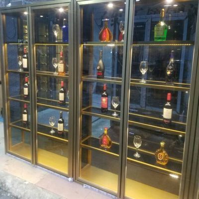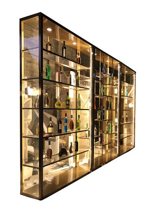 304 OED उच्च गुणवत्ता कस्टम आकार रंगीन शराब की दुकान फर्नीचर एलईडी होटल विला के साथ ऊंची शराब कैबिनेट