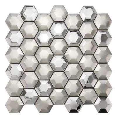 दीवार सजावट के लिए 3 डी हेक्सागोन चांदी रंग स्टेनलेस स्टील मोज़ेक टाइल