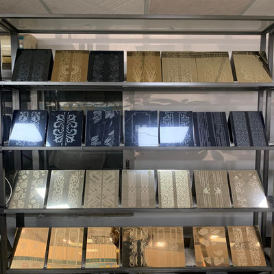 उत्कीर्ण पैटर्न चुनिंदा रूप से निर्दिष्ट क्षेत्रों पर एक सुरक्षात्मक एसिड प्रतिरोधी फिल्म लागू करके और असुरक्षित क्षेत्रों को एसिड उत्कीर्णन करके बनाए जाते हैं। उत्कीर्णन स्टेनलेस स्टील की एक पतली परत को हटा देता है,रंग को एक सुस्त चांदी के भूरे रंग में बदलना, और सतह को कठोर बनाता है, जिसे पीसने, सुपर दर्पण या अन्य परिष्करणों के साथ हजारों भिन्नताएं बनाने के लिए विपरीत किया जा सकता है।इसका प्रयोग सजावट के लिए किया जाता था।, जैसे लिफ्ट के दरवाजे, दीवार के पैनल, कॉपिंग और ट्रिमिंग।