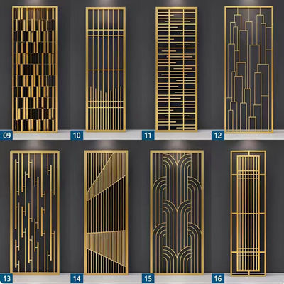 शास्त्रीय शैली स्वर्ण रंग स्टेनलेस स्टील स्क्रीन विभाजन कक्ष विभाजक
