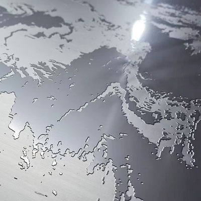 उत्कीर्ण पैटर्न चुनिंदा रूप से निर्दिष्ट क्षेत्रों पर एक सुरक्षात्मक एसिड प्रतिरोधी फिल्म लागू करके और असुरक्षित क्षेत्रों को एसिड उत्कीर्णन करके बनाए जाते हैं। उत्कीर्णन स्टेनलेस स्टील की एक पतली परत को हटा देता है,रंग को एक सुस्त चांदी के भूरे रंग में बदलना, और सतह को कठोर बनाता है, जिसे पीसने, सुपर दर्पण या अन्य परिष्करणों के साथ हजारों भिन्नताएं बनाने के लिए विपरीत किया जा सकता है।इसका प्रयोग सजावट के लिए किया जाता था।, जैसे लिफ्ट के दरवाजे, दीवार के पैनल, कॉपिंग और ट्रिमिंग।