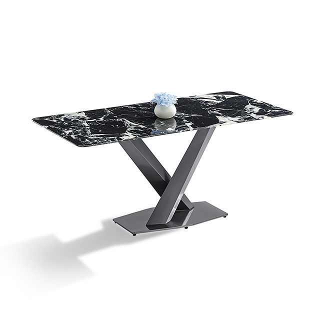आधुनिक सिंटरड स्टोन ब्लैक टाइटेनियम स्टेनलेस स्टील डाइनिंग टेबल