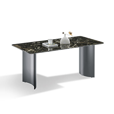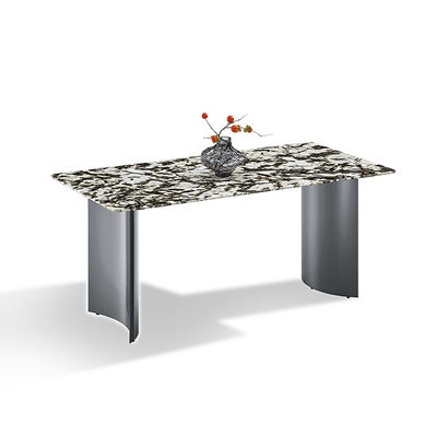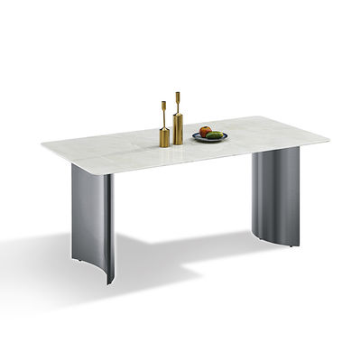 आधुनिक सिंटर पत्थर टेबलटॉप डबल गोल आर्क स्टेनलेस स्टील टेबल पैर