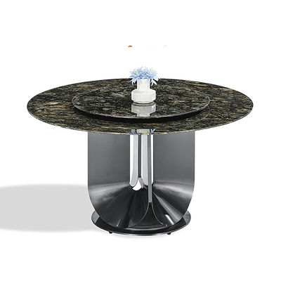 Modern Round Sintered Stone Tabletop Black Color Stainless Steel Dining Table with Turntable आधुनिक गोल सिंटेड स्टोन टेबलटॉप काले रंग का स्टेनलेस स्टील भोजन टेबल टर्नटेबल के साथ