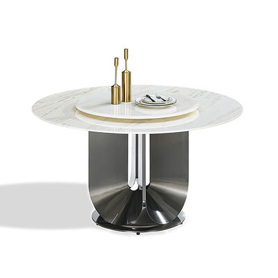 Luxury Stainless Steel Dining Table with Rotating Artificial Stone Top रोटिंग आर्टिफिशियल स्टोन टॉप के साथ लक्जरी स्टेनलेस स्टील डाइनिंग टेबल