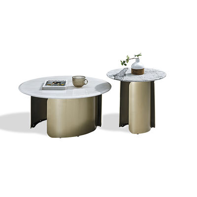 OEM कृत्रिम पत्थर स्लैब टॉप शैम्पेन गोल्ड कलर स्टेनलेस स्टील कॉफी टेबल